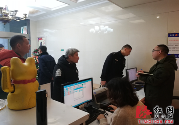 为进一步加强辖区稳定,营造安全、和谐的环境,加大对宾馆旅店的管理,12月26日下午三点,由天心区城南路街道办事处副主任邱阜带队,街道安监办、消安办、白沙井社区,派出所、工商所等部门联合对白沙井社区范围内宾馆酒店、家庭旅店开展了消防安全联合执法检查。