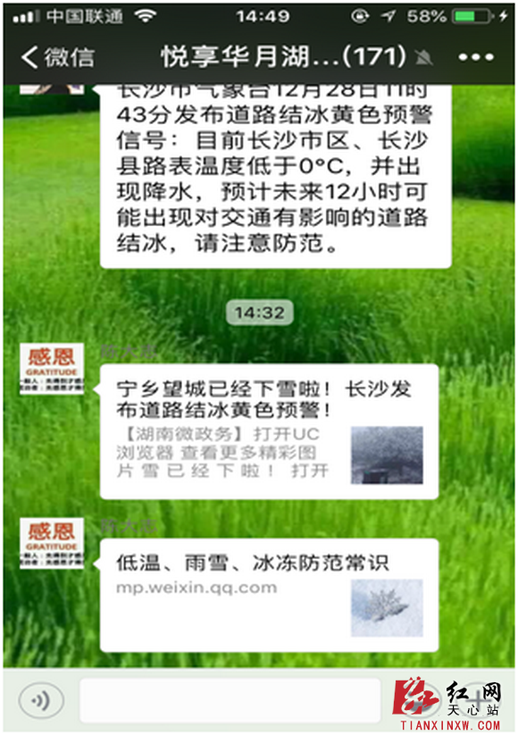 社区在居民群发布低温、雨雪、冰冻温馨提示